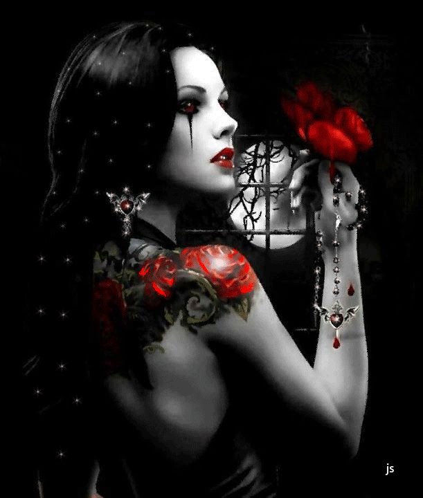 i remember (and have collected here!) gifs that featured pale girls standing about in the rain with glittery tears edited in, borders or dividers on websites that dripped blood, or femme fatales holding knives or baring their teeth: there was a lot of vampiric melodrama going on lol.